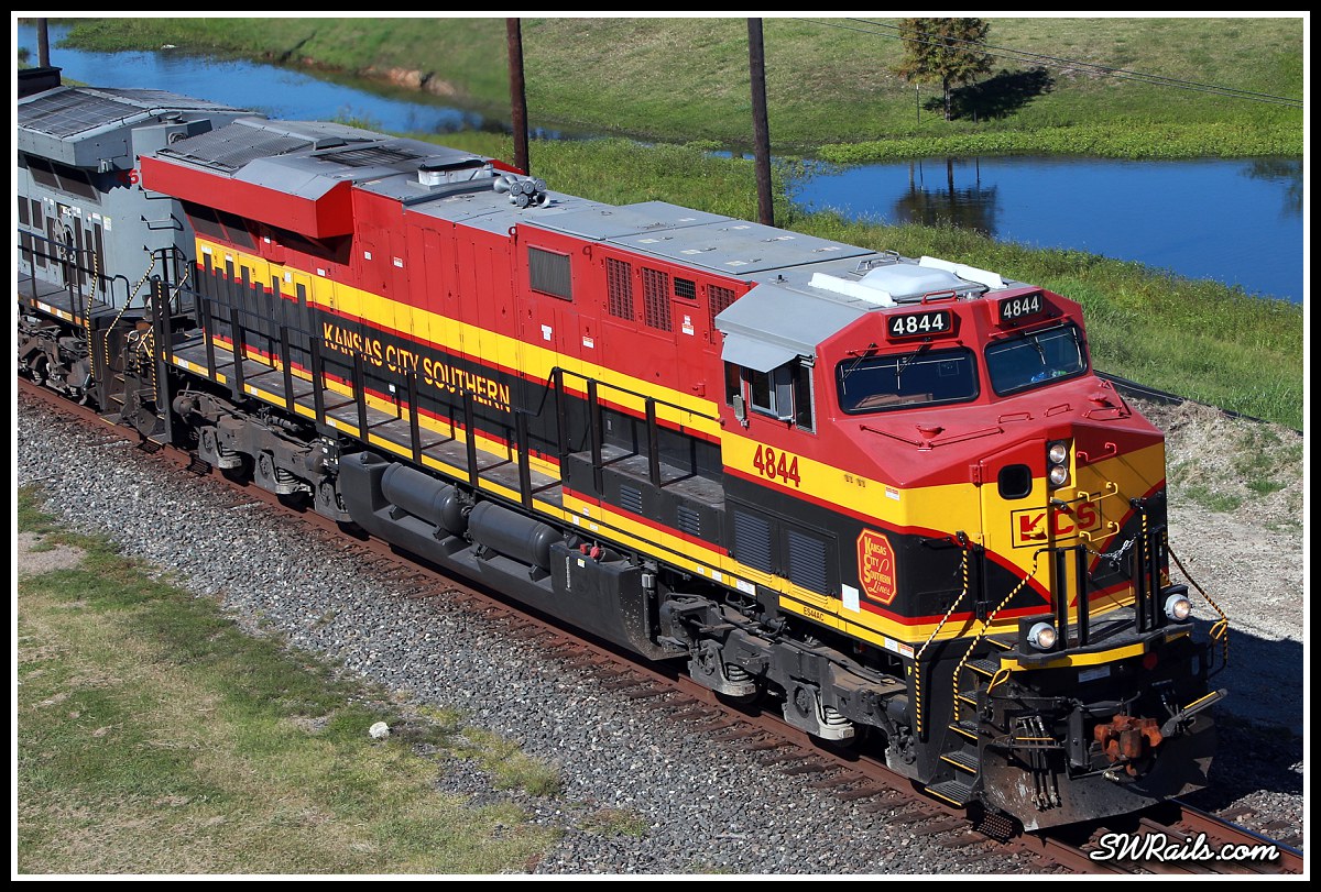 KCS 3941 East was right behind BNSF 5057, but it tripped the wide load detector at MP 34.5 and had to stop to inspect their train.