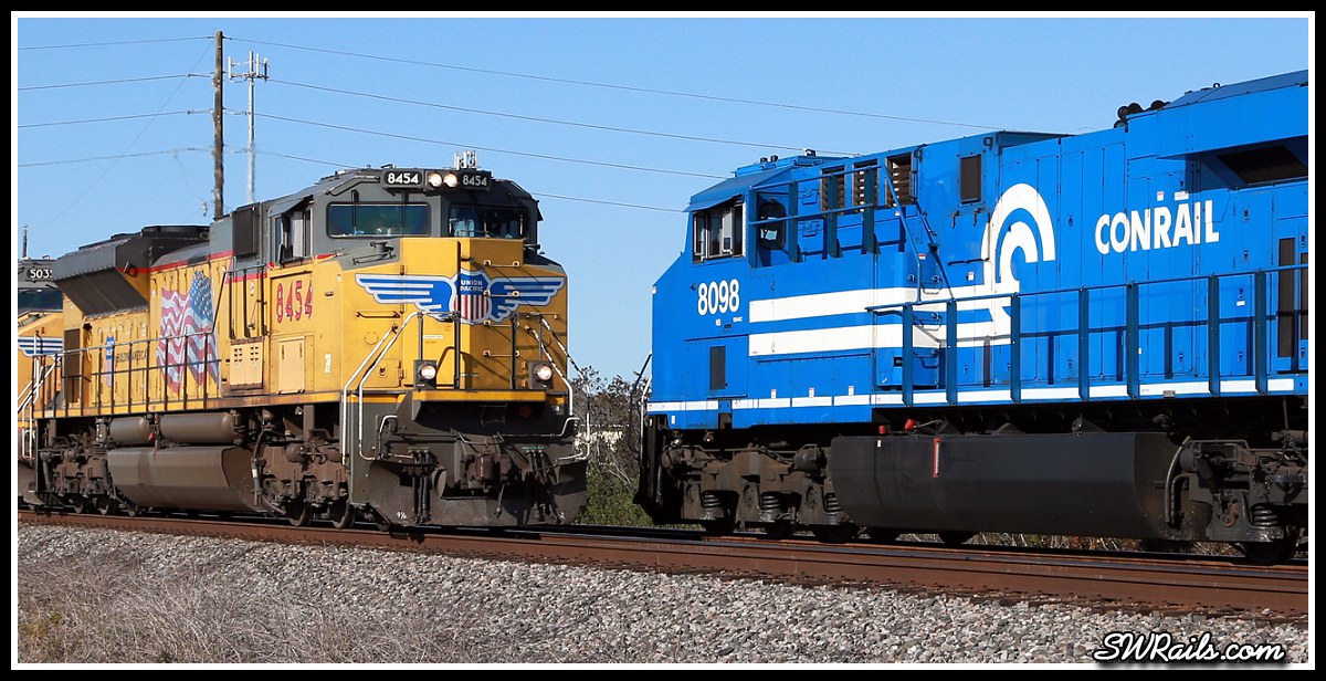 It wasn’t until 12:53 PM that UP 5917 passed by the NS 8098.