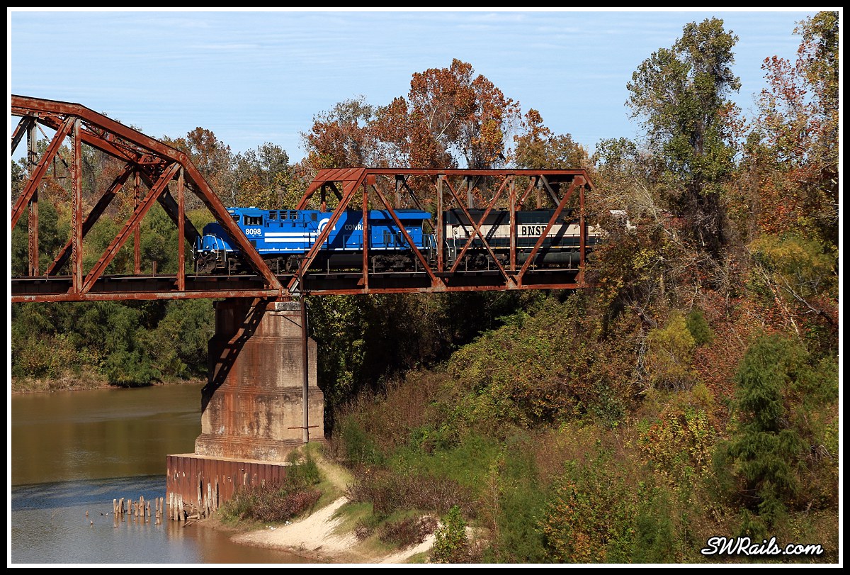 A short drive west provided these views as NS 8098 crossed the Brazos River at 1:14 PM: