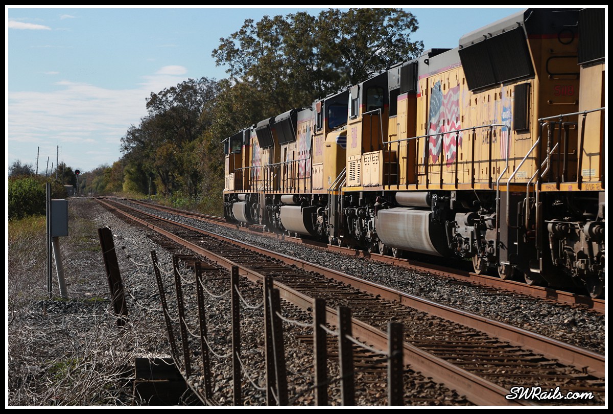 I started leaving the house when #2 was between East Bernard and Rosenberg, about 25 miles west of me. But I got sidetracked with letting the dog out, securing a loose gate, and several other trifles. Before I knew it, 15 minutes had gone by. Add in that the radio had been very quiet, which meant that there wasn’t any other traffic out there to slow down #2’s progress, and I was feeling pretty nervous. As I finally get going my fears are confirmed when I hear the detector at MP 30.5 announce no defects for 36 axles at 70 mph. Crap!